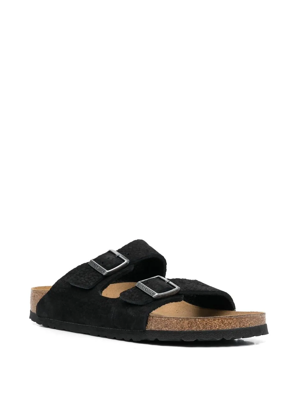 Arizona double-strap slides from BIRKENSTOCK featuring black, sand beige, calf leather, open toe, side buckle fastening, slip-on style, branded insole and flat rubber sole. When buying this unisex item, keep in mind that it is graded in standard men’s sizing..