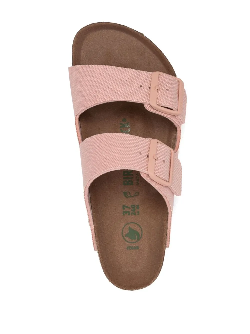 Arizona side-buckle detail slides from BIRKENSTOCK featuring side buckle fastening, blush pink, slip-on style, open toe, branded insole and flat rubber sole.