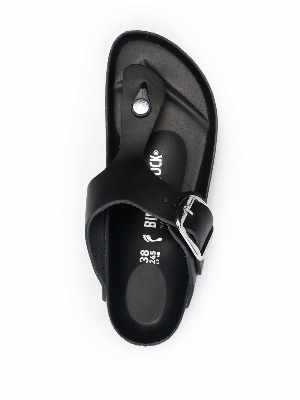 Black suede/leather Gizeh flip flops from BIRKENSTOCK featuring side buckle fastening, open toe, branded insole and flat rubber sole.