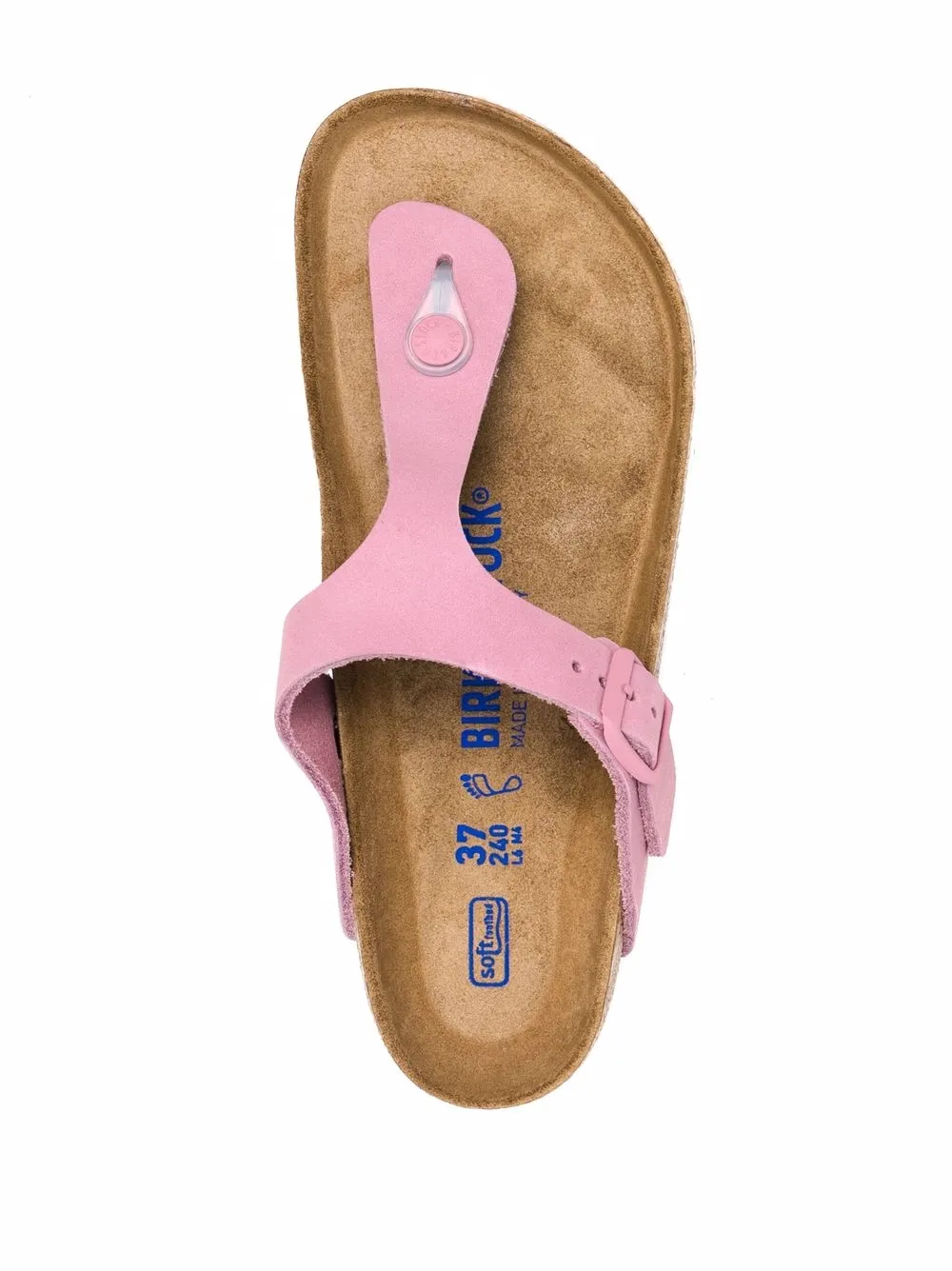 Presented in an orchid pink hue, Birkenstock’s Gizeh sandals boast an upper crafted from nubuck leather and a suede lining, offering a plush feel to the moulded footbed.