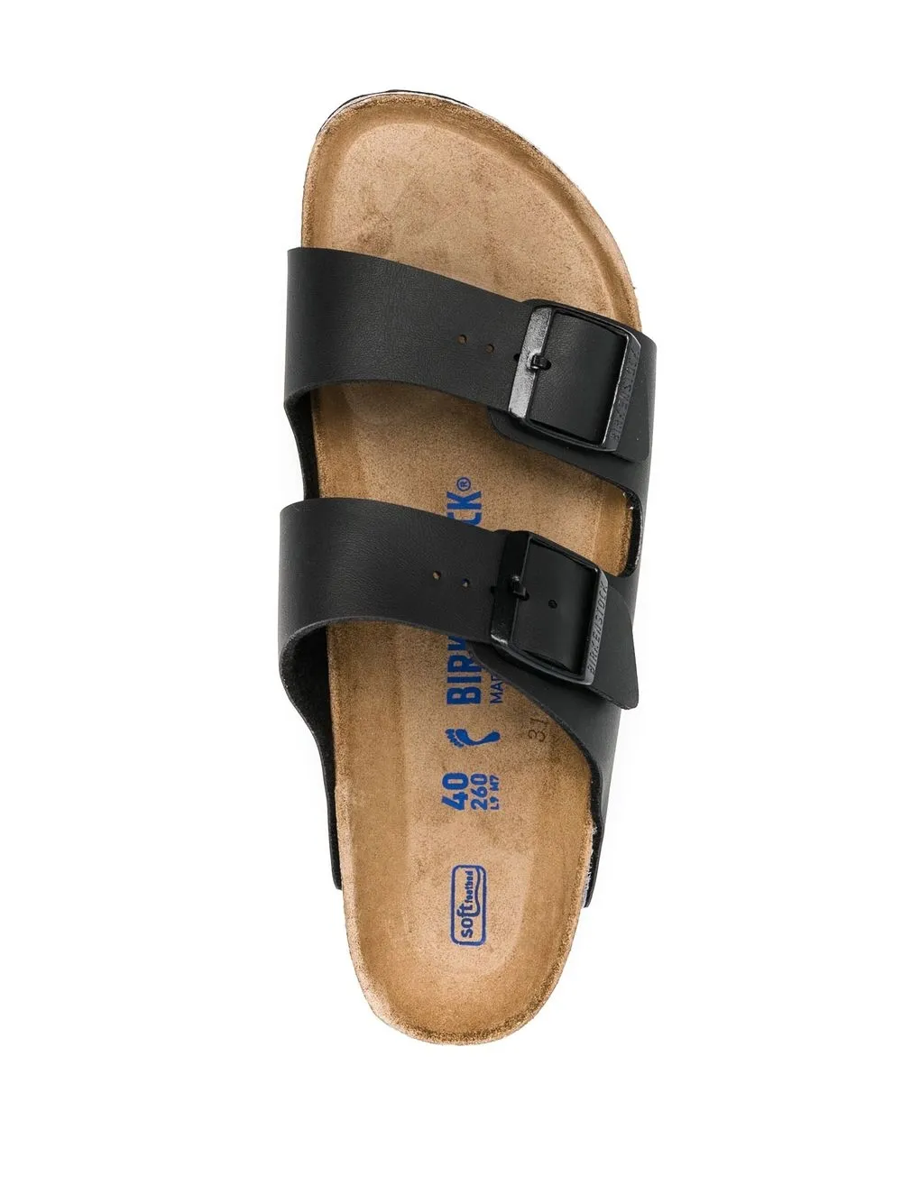 Black leather side buckle-fastening sandals from BIRKENSTOCK featuring slip-on style, side buckle fastening, open toe, branded insole and flat rubber sole.